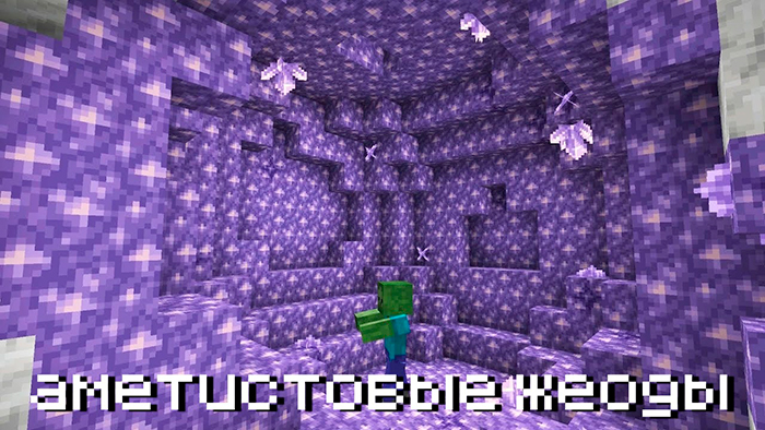Глубоко в пещерах Майнкрафт 1.17.0.0 , 1.17.0 и 1.17.10, под землей генерируется мини-локация – жеод. Она выполнена в форме шара. Снаружи есть два слоя, выполненные из кальцита и туфа, один из которых белый, второй коричневый. Это – камни, схожие всем с андезитом и диоритом, добываются киркой.