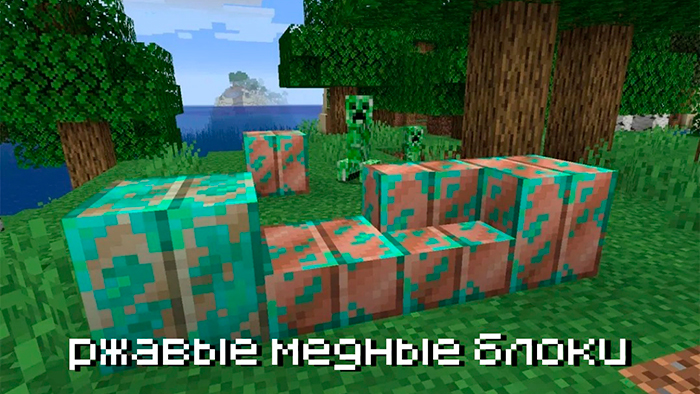 При помещении ее в печь получим медный слиток, используемый во многих крафтах. К примеру, блок в Minecraft PE 1.17.0.0 , 1.17.0 и 1.17.10 из него можно сделать используя всего четыре предмета. Все блоки из меди в Майнкрафт 1.17.0.0 , 1.17.0 и 1.17.10 имеют оранжевую текстуру, однако со временен она ржавеет. Этот процесс можно остановить, путем соединения, например, ступеней с пчелиными сотами.
